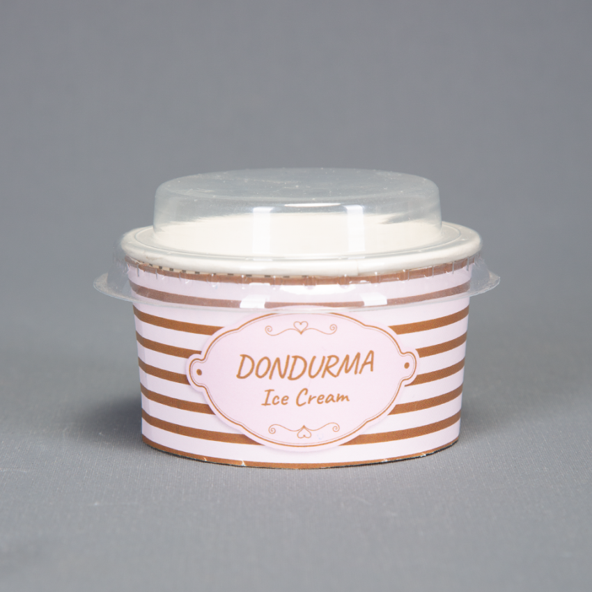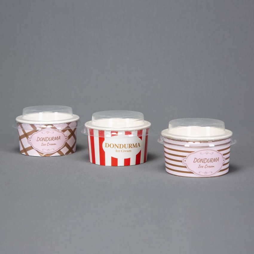 Ağız çapı 8,5 cm, taban çapı 7,2 cm, yüksekliği 4,5 cm ebatlarında 100 cc hacimli, kalın kartondan dondurma kasesidir. Dondurmacıların ve pastanelerin külah harici dondurma servisine uygundur.